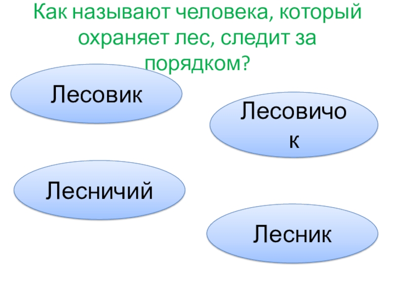 Слайд 10Как называют человека, который охраняет лес, следит за порядком?