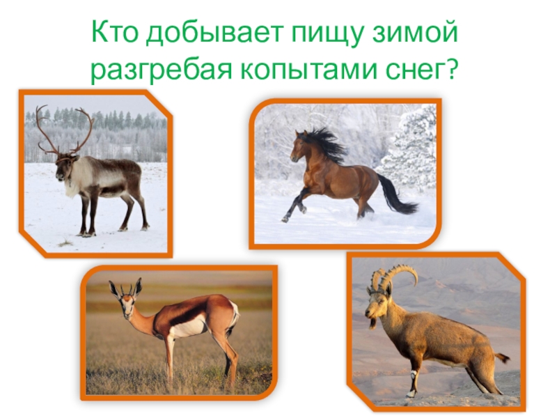 Слайд 11  Кто добывает пищу зимой разгребая копытами снег?