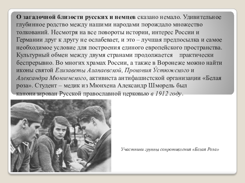 Слайд 20О загадочной близости русских и немцев сказано немало. Удивительное глубинное родство
