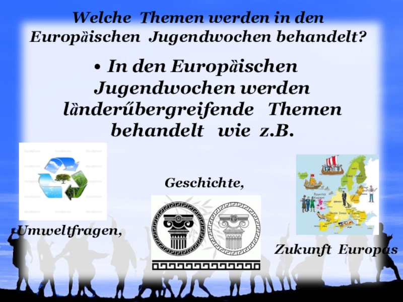 Welche Themen werden in den Europȁischen Jugendwochen behandelt?