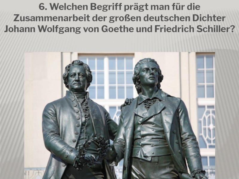 6. Welchen Begriff prägt man für die Zusammenarbeit der großen deutschen Dichter Johann Wolfgang von Goethe und