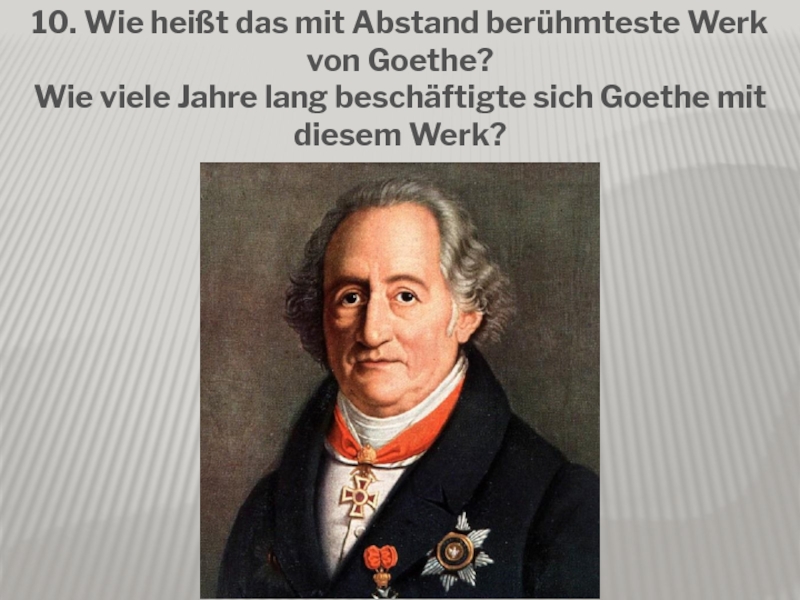 Слайд 1110. Wie heißt das mit Abstand berühmteste Werk von Goethe?