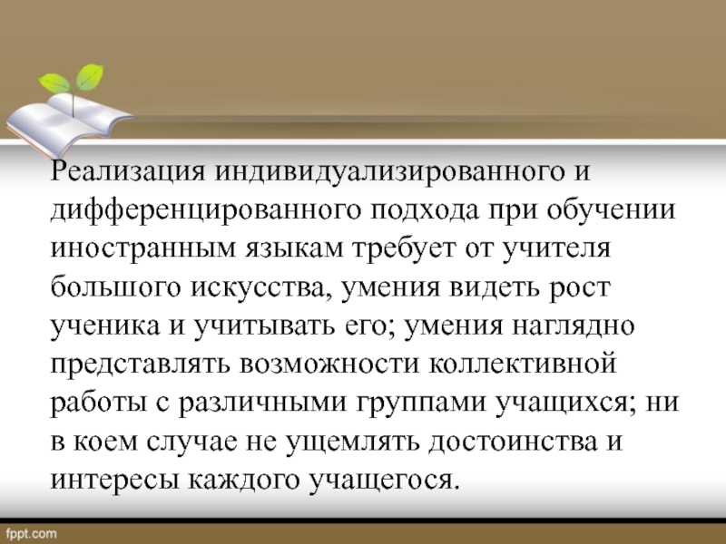 Реализация индивидуализированного и дифференцированного подхода при обучении иностранным языкам требует от