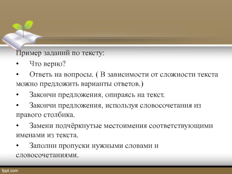 Пример заданий по тексту:
