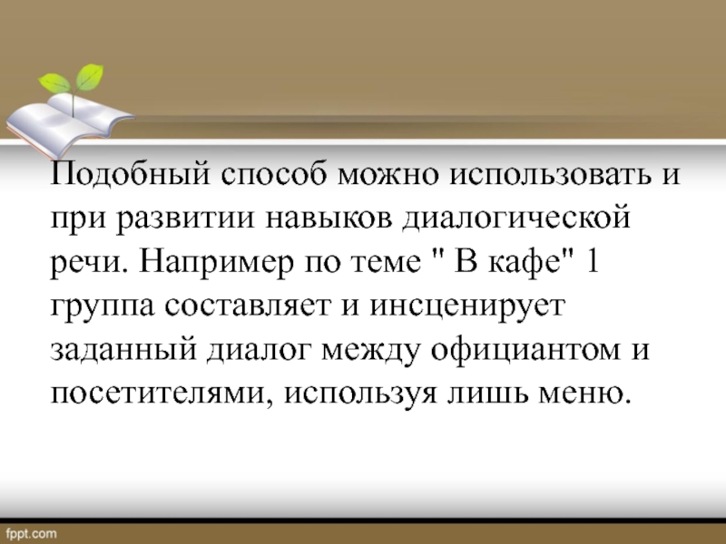 Подобный способ можно использовать и при развитии навыков диалогической речи. Например