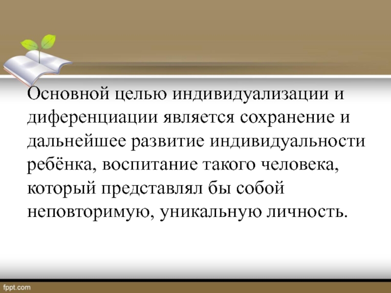 Основной целью индивидуализации и диференциации является сохранение и дальнейшее развитие индивидуальности