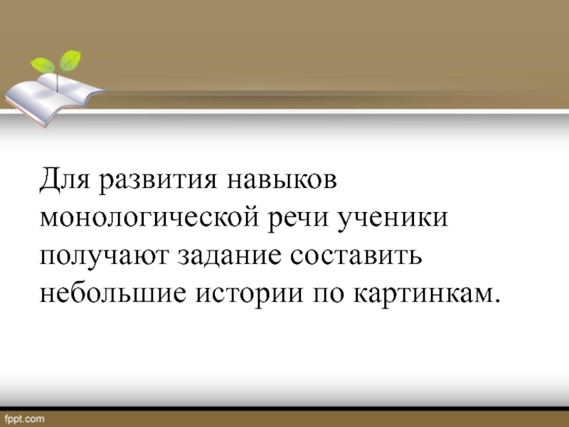 Для развития навыков монологической речи ученики получают задание составить небольшие истории