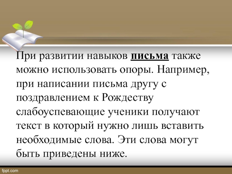 При развитии навыков письма также можно использовать опоры. Например, при написании