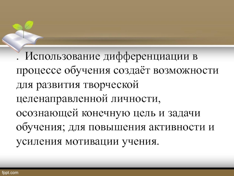 . Использование дифференциации в процессе обучения создаёт возможности для развития творческой