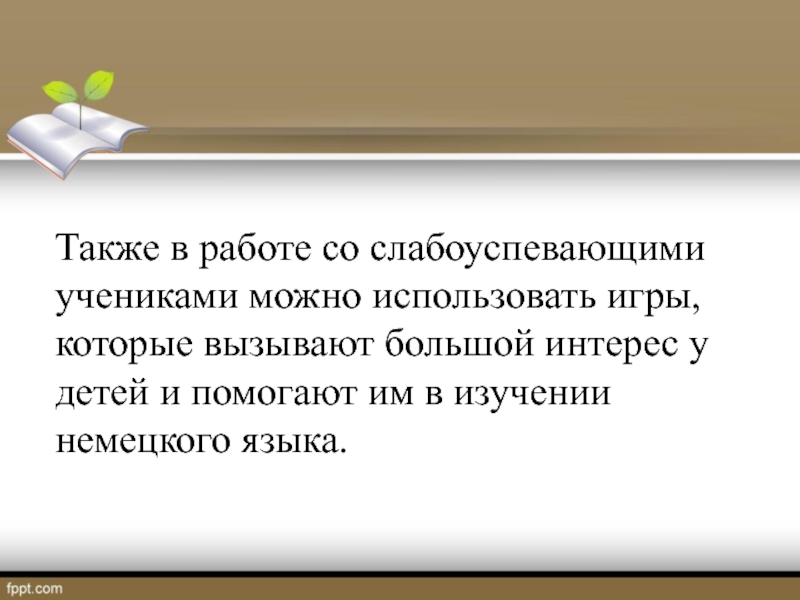 Также в работе со слабоуспевающими учениками можно использовать игры, которые вызывают