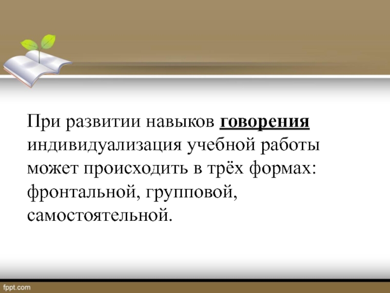 При развитии навыков говорения индивидуализация учебной работы может происходить в трёх