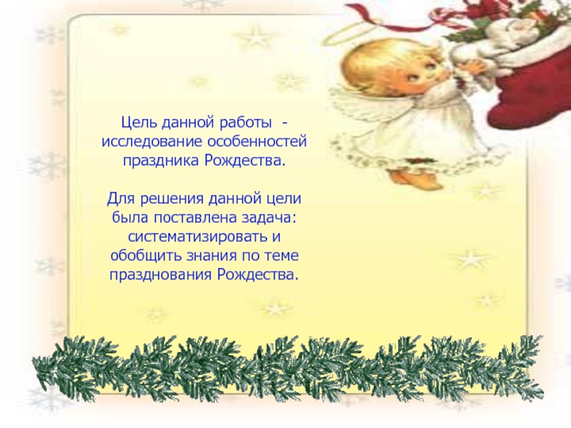 Слайд 9Цель данной работы - исследование особенностей праздника Рождества.