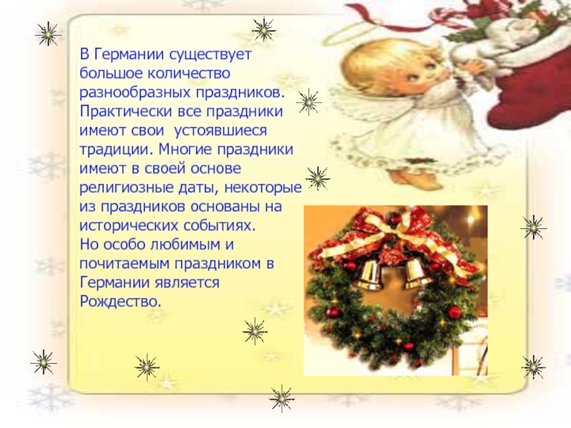 Слайд 8В Германии существует большое количество разнообразных праздников. Практически все праздники имеют