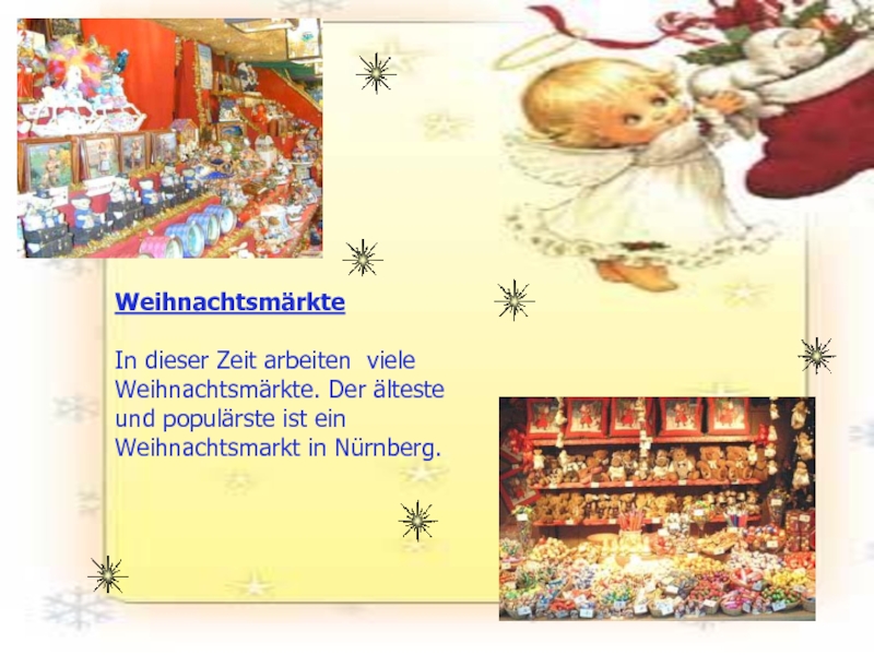 In dieser Zeit arbeiten viele Weihnachtsmärkte. Der älteste und populärste ist