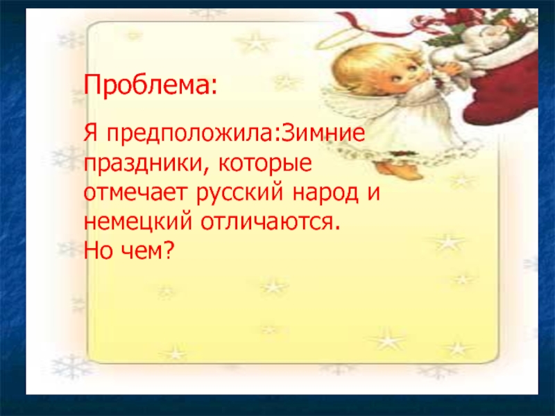 Я предположила:Зимние праздники, которые отмечает русский народ и немецкий отличаются.