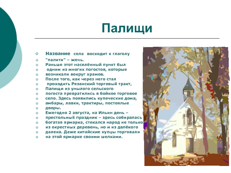Если ехать на автобусе из деревни Старково до посёлка Мезиновский, то по пути следования нам встретятся несколько населённых пунктов, через которые в конце 18 века проходил знаменитый Рязанский торговый тракт.