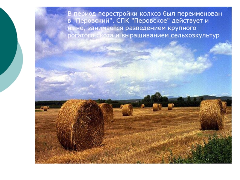 В период перестройки колхоз был переименован в "Перовский". СПК "Перовское" действует и ныне, занимается разведением крупного рогатого скота и выращиванием сельхозкультур