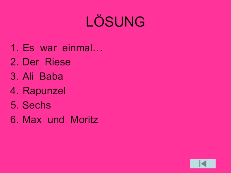 LÖSUNGEs war einmal…Der RieseAli BabaRapunzelSechsMax und Moritz