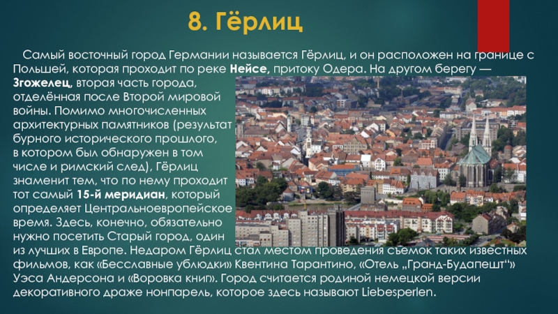 Самый восточный город Германии называется Гёрлиц, и он