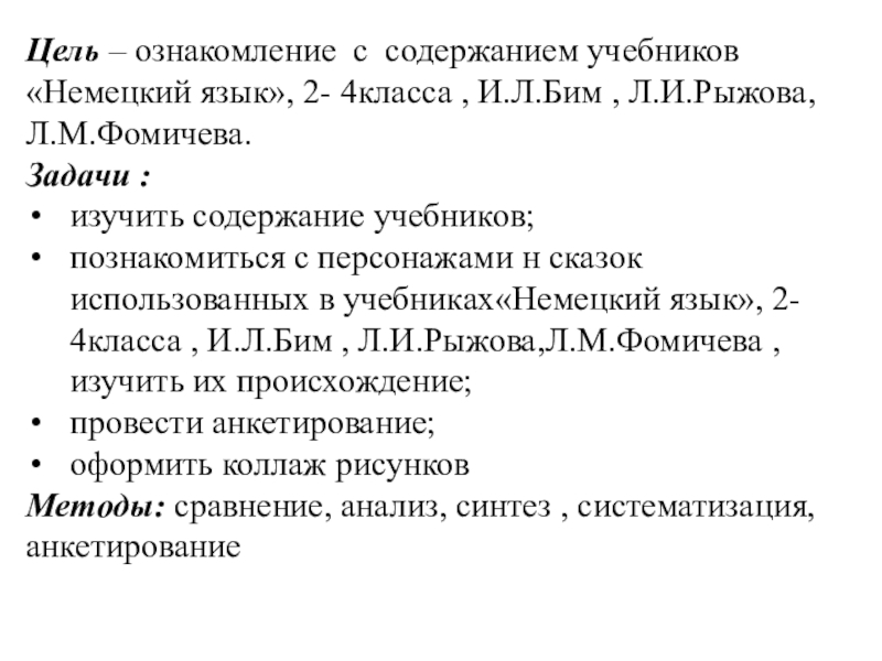 персонажи в учебниках немецкого языка для общеобразовательных учреждений /И.Л.Бим, Л.И.Рыжова, Л.М.Фомичева.