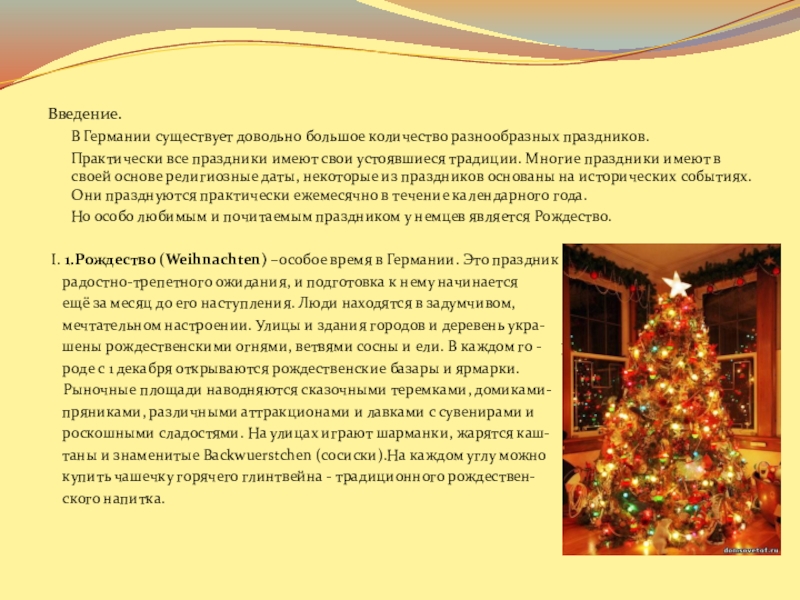 I. 1.Рождество (Weihnachten) –особое время в Германии. Это праздник