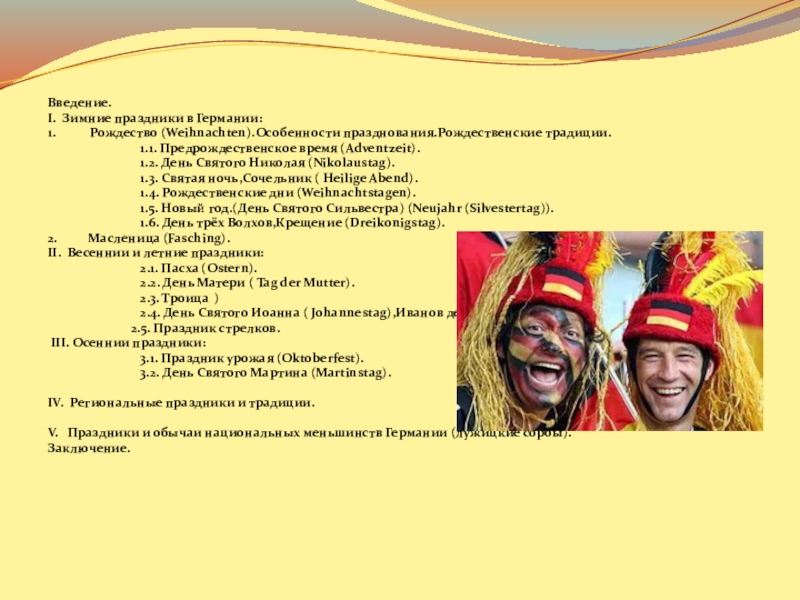 Немецкие праздники , обычаи и традиции их празднования, складывались