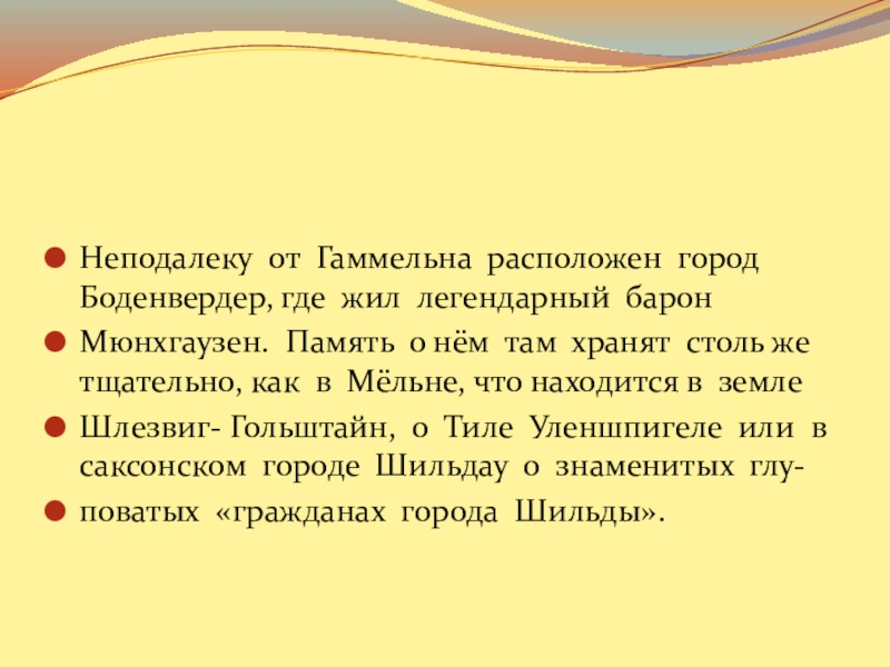 Неподалеку от Гаммельна расположен город Боденвердер, где жил легендарный барон