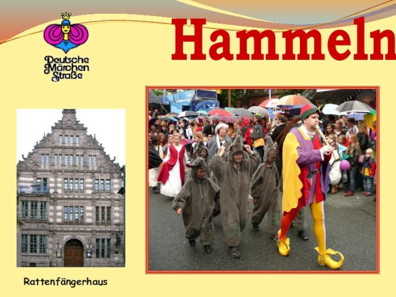 Каждое лето горожане в живописных кос- тюмах средневековых персонажей в лицах ис- полняют притчу о Крысолове на ступенях сво- ей ратуши.