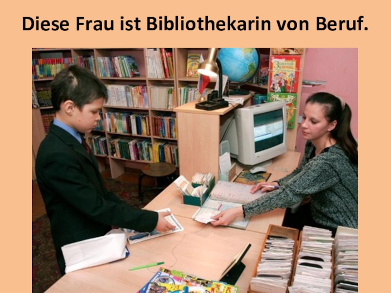 Слайд 9Diese Frau ist Bibliothekarin von Beruf.