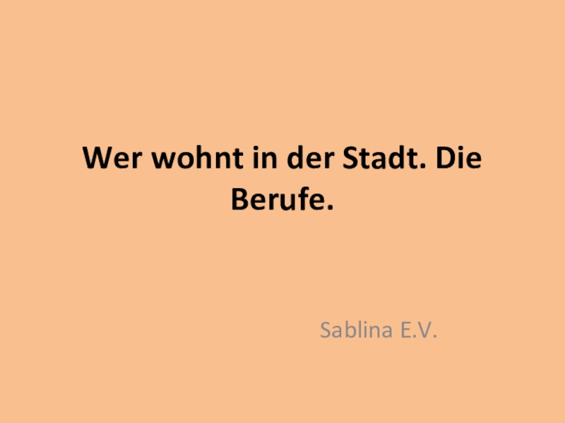 Wer wohnt in der Stadt. Die Berufe.Sablina E.V.