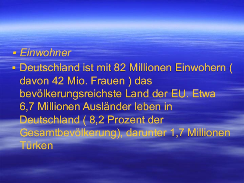 Deutschland ist mit 82 Millionen Einwohern ( davon 42 Mio.