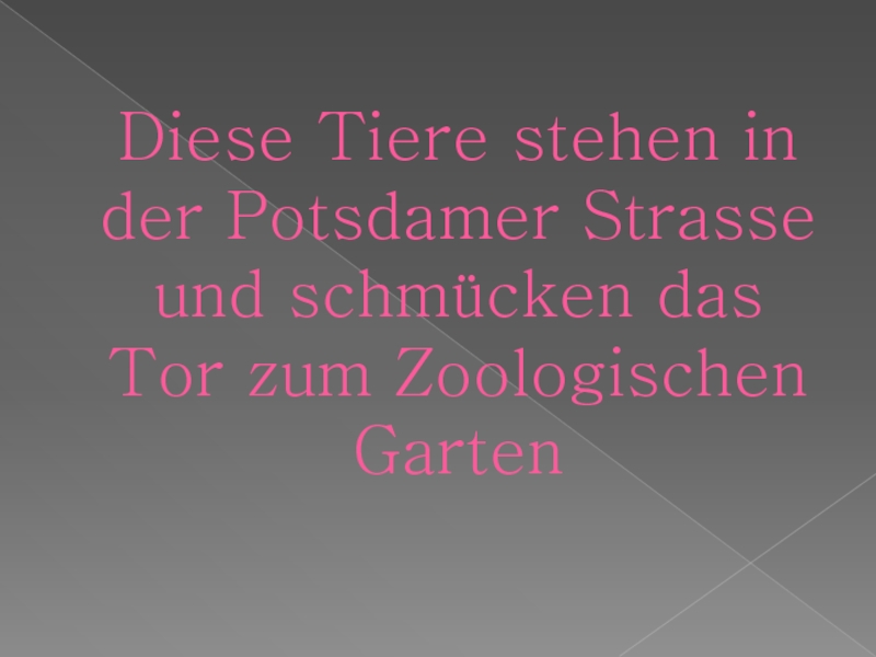 Слайд 18Diese Tiere stehen in der Potsdamer Strasse und schmücken das Tor