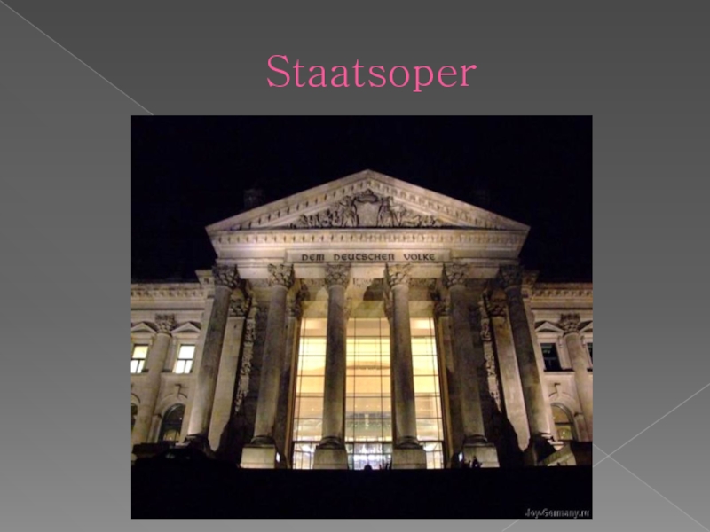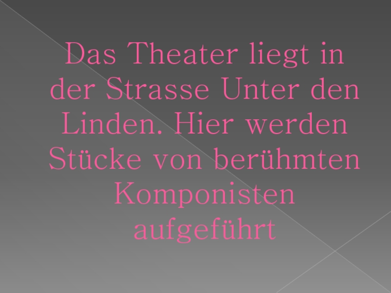 Слайд 28Das Theater liegt in der Strasse Unter den Linden. Hier werden