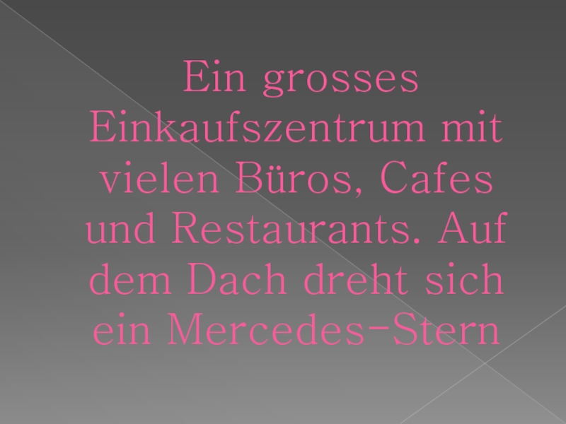 Слайд 30 Ein grosses Einkaufszentrum mit vielen Büros, Cafes und Restaurants. Auf