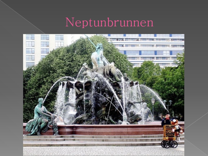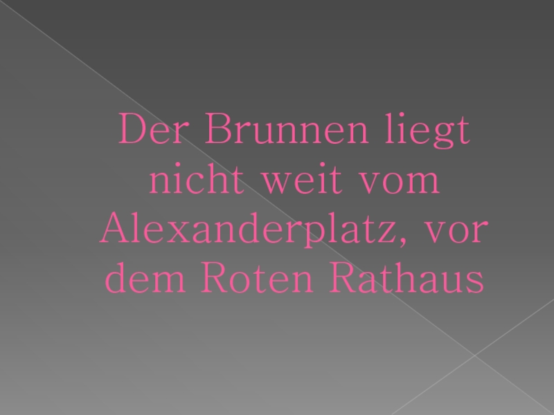 Слайд 24Der Brunnen liegt nicht weit vom Alexanderplatz, vor dem Roten Rathaus