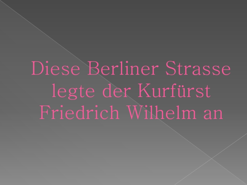 Слайд 14Diese Berliner Strasse legte der Kurfürst Friedrich Wilhelm an