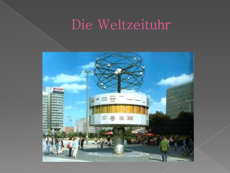 Слайд 2An dieser Uhr kann man die Zeit in der ganzen Welt