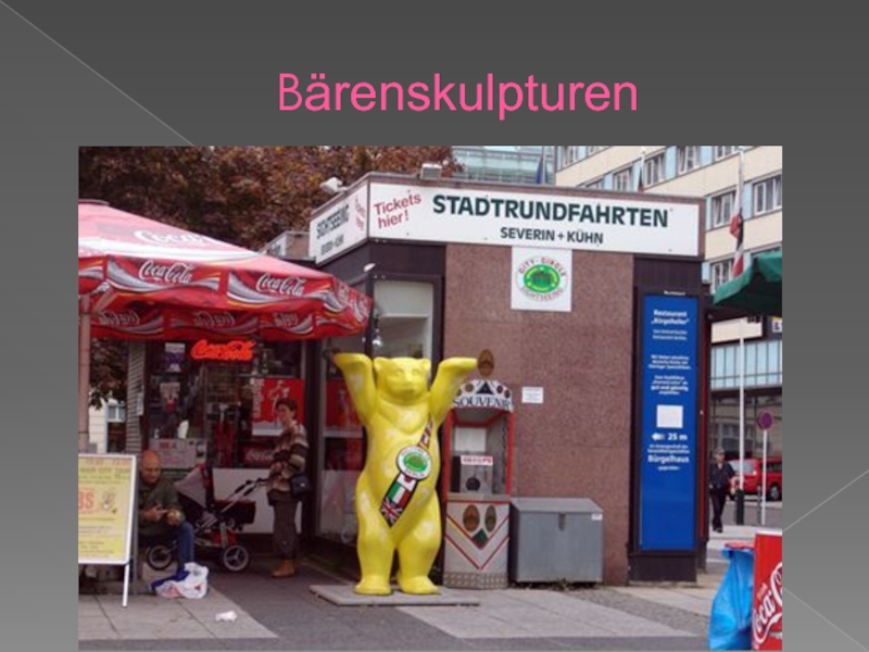 Слайд 12Skulpturen von diesem Tier schmücken die Strassen Berlins