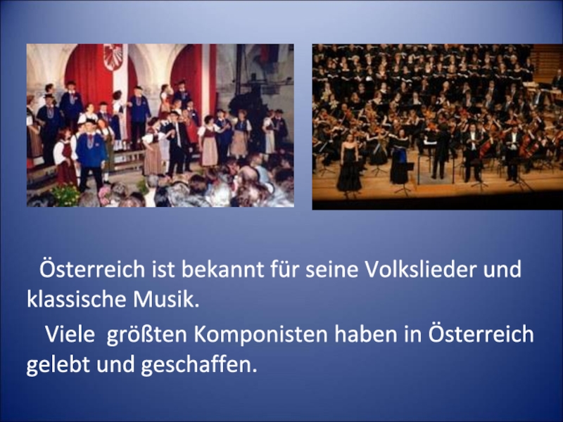 Слайд 16 Österreich ist bekannt für seine Volkslieder und klassische