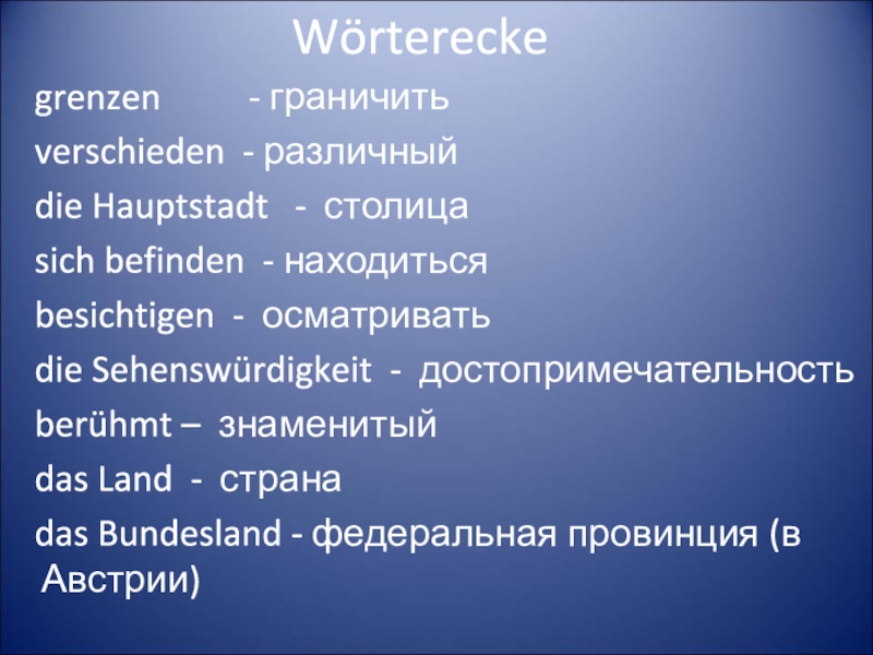 Wörterecke  grenzen     - граничить  verschieden - различный  die Hauptstadt