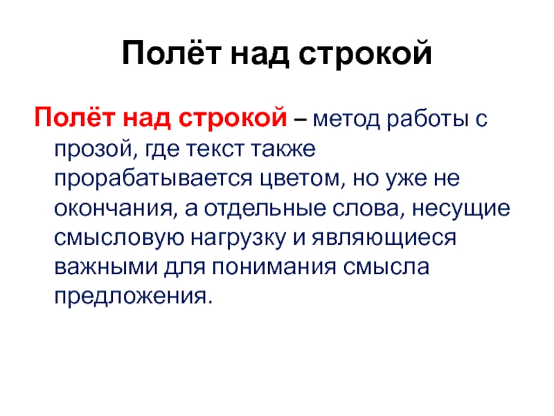 текст также прорабатывается цветом, но уже не окончания, а отдельные слова, несущие смысловую нагрузку и являющиеся важными для понимания смысла предложения.