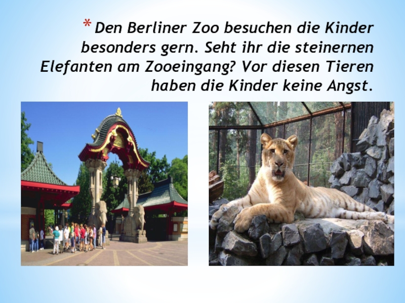 Слайд 4Den Berliner Zoo besuchen die Kinder besonders gern. Seht ihr die