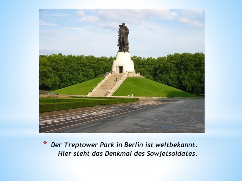 Слайд 7Der Treptower Park in Berlin ist weltbekannt. Hier steht das Denkmal