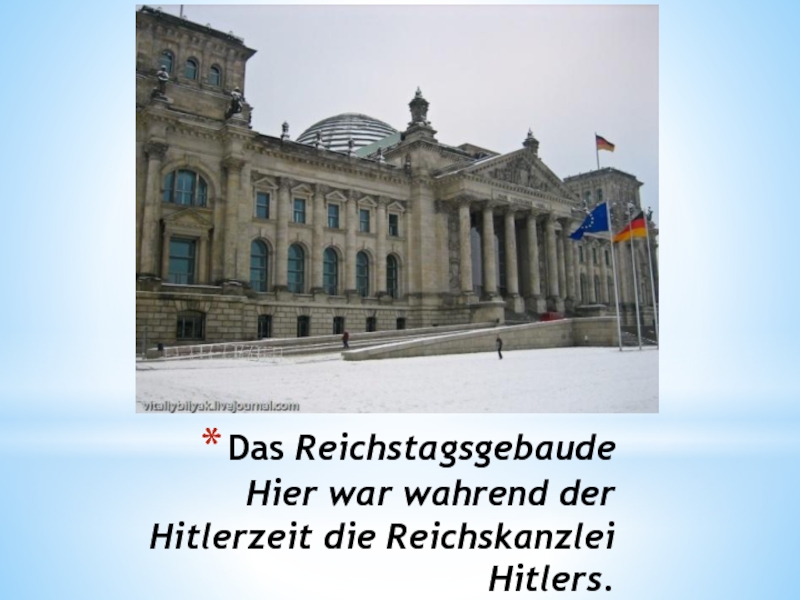 Слайд 8Das Reichstagsgebaude Hier war wahrend der Hitlerzeit die Reichskanzlei Hitlers.