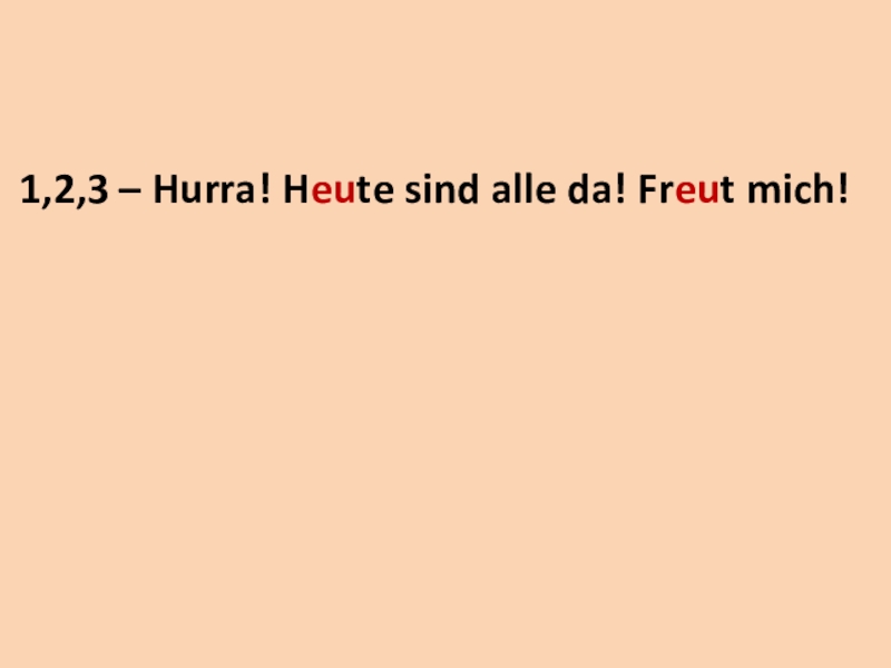 Слайд 201,2,3 – Hurra! Heute sind alle da! Freut mich!