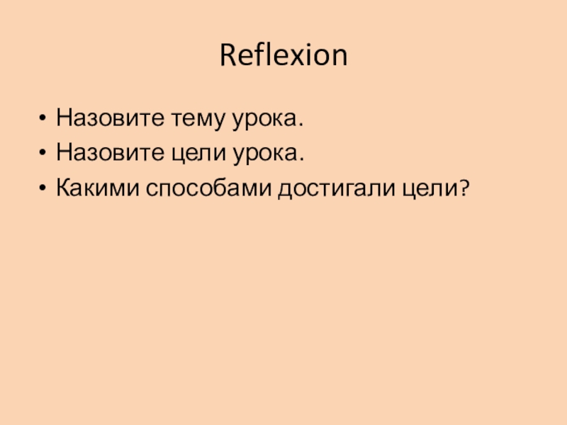ReflexionНазовите тему урока.Назовите цели урока.Какими способами достигали цели?