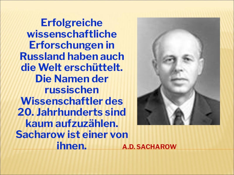 Erfolgreiche wissenschaftliche Erforschungen in Russland haben auch die Welt erschüttelt. Die Namen der russischen Wissenschaftler des 20. Jahrhunderts sind kaum aufzuzählen. Sacharow ist einer von ihnen.