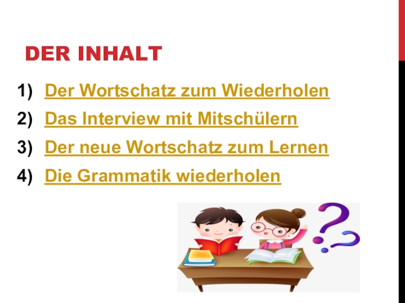 Слайд 2Der inhalt