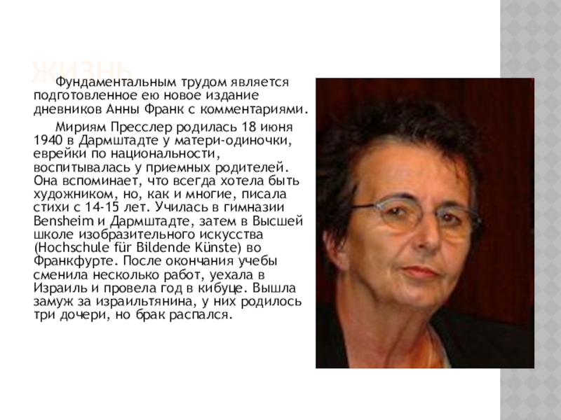 Слайд 2Немецкая писательница и переводчица, также известна как автор популярных книг для