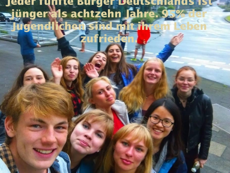 Jeder fünfte Bürger Deutschlands ist jünger als achtzehn Jahre. 95% der Jugendlichen sind mit ihrem Leben zufrieden.